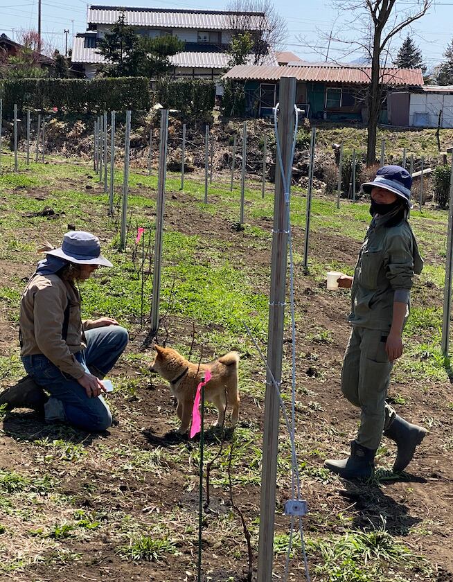 アメリカ出身のチャールズと長野県飯田市出身の佳生子さんが夫婦でワイン造りを目指そうと2020年に長野県塩尻市片丘地区で畑を借りてぶどう栽培をスタート。